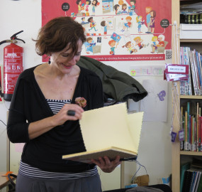 Al final de les dues sessions tan interessants que ens va fer l’ Anna Manso i desprès de fer-li un munt de preguntes li vam regalar un llibre abecedari, “L’ Abecedari de l’Anna”,a cada pàgina hi ha una lletra de l’abecedari, una paraula que surt en algun dels seus llibres que comença amb aquesta lletra, el seu dibuix i el títol del llibre on apareix.