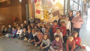 31/10/19Avui hem tingut una visita molt especial, ha vingut a l’escola en Pere Ribes. En Pere és un noi que està a punt de fer 14 anys i és cec. El vam conèixer quan fèiem educació infantil. Ens ha agradat molt que ens tornés a visitar!Ha vingut acompanyat de las seva mare, l’Antònia. Ella ens ha explicat com s’ho va fer en Pere per aprendre a llegir i escriure en Braille. En Pere ens ha explicat que fa natació i que quan sigui gran vol ser periodista esportiu. Actualment fa de comentarista dels partits que juga l’Unió Esportiva Olot a casa. En Pere ha escrit un llibre, “És quan faig ràdio que hi veig clar”, on explica la seva vida. En acabar en Pere ens ha ensenyat com llegeix en Braille i ha escrit el nom de tots i totes amb la màquina Perkins. Les nenes i els nens de 5è han regalat a en Pere un cub fet amb papiroflèxia on tots hem signat i un collar dels colors del Betis, l’equip preferit d’en Pere.