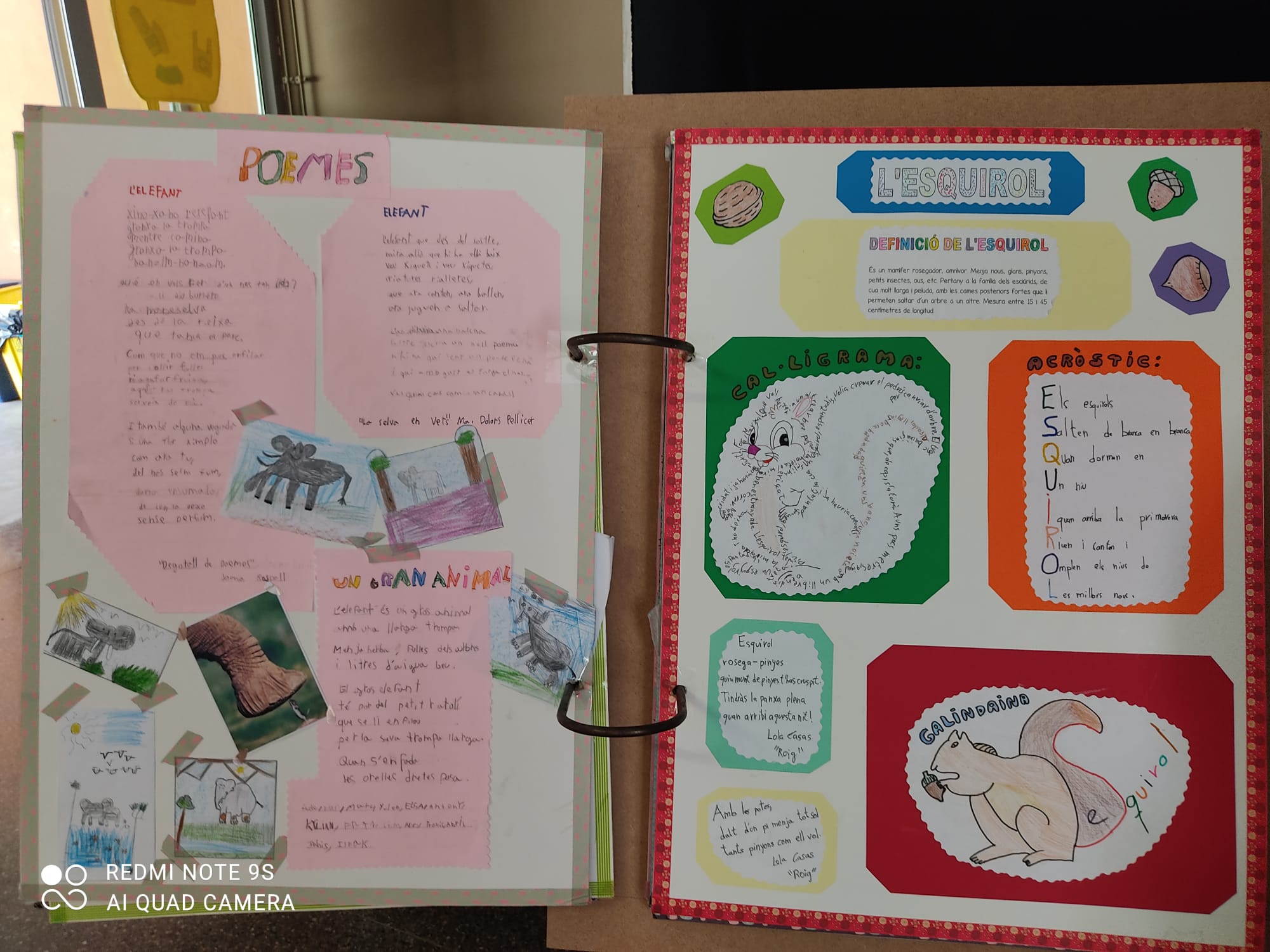 Primer treball: llibre cooperatiu. Cada aula ha fet un full de l’animal escollit on hi ha una part literària i una altra científica.