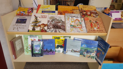 El Nadal també arriba a la biblioteca!!!. Aquest mes de desembre hi ha hagut una exposició de llibres de contes i tradicions del nadal. Alguns llibres han sortit de la biblioteca i els hem exposat en un espai del passadís, proper a les classes d’Ed. Infantil. Aprofitem per fer la sessió de biblioteca en aquest espai, aixi com que els i les alumnes més petits els puguin mirar o llegir qualsevol dia i a qualsevol hora.