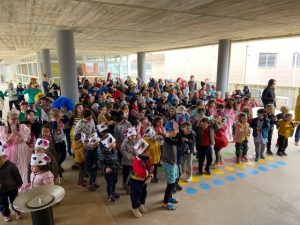 Les nenes i els nens de cicle mitjà han donat la benvinguda al Rei Carnestoltes i tota l’escola l’ha vingut a rebre amb una màscara, una perruca o un barret. Amb el pregó i un ball hem donat el tret de sortida a la gresca i la disbauxa!