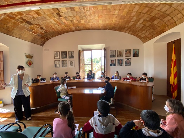 Les nenes i els nens de 3r estem estudiant el poble, l’ajuntament i els serveis municipals i el passat dimecres 26 de maig vam anar a visitar a l’Ajuntament de Mont-ras. Primer de tot vam poder fer unes preguntes que havíem preparat a l’alcaldessa Vanessa Peiró. Després l’alcaldessa ens va ensenyar totes les dependències de l’ajuntament i fins i tot vam poder seure a la sala de plens. Ens va agradar molt poder conèixer les persones que hi treballen, visitar l’arxiu i agafar la vara d’alcalde. Ara sabem que l’ajuntament és la casa de tots i totes!