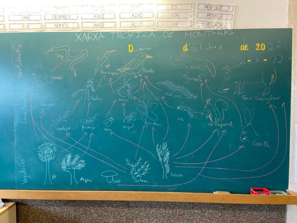 26/10/22Aquesta setmana les nenes i els nens de 3r hem realitzat l’activitat “HI HA ESQUIROLS AL NOSTRE BOSC?” Hem treballat a l’aula i hem fet una sortida a l’entorn per tal d’observar si al nostre bosc proper hi viuen esquirols. No els hem vist però hem trobat el seu rastre!
