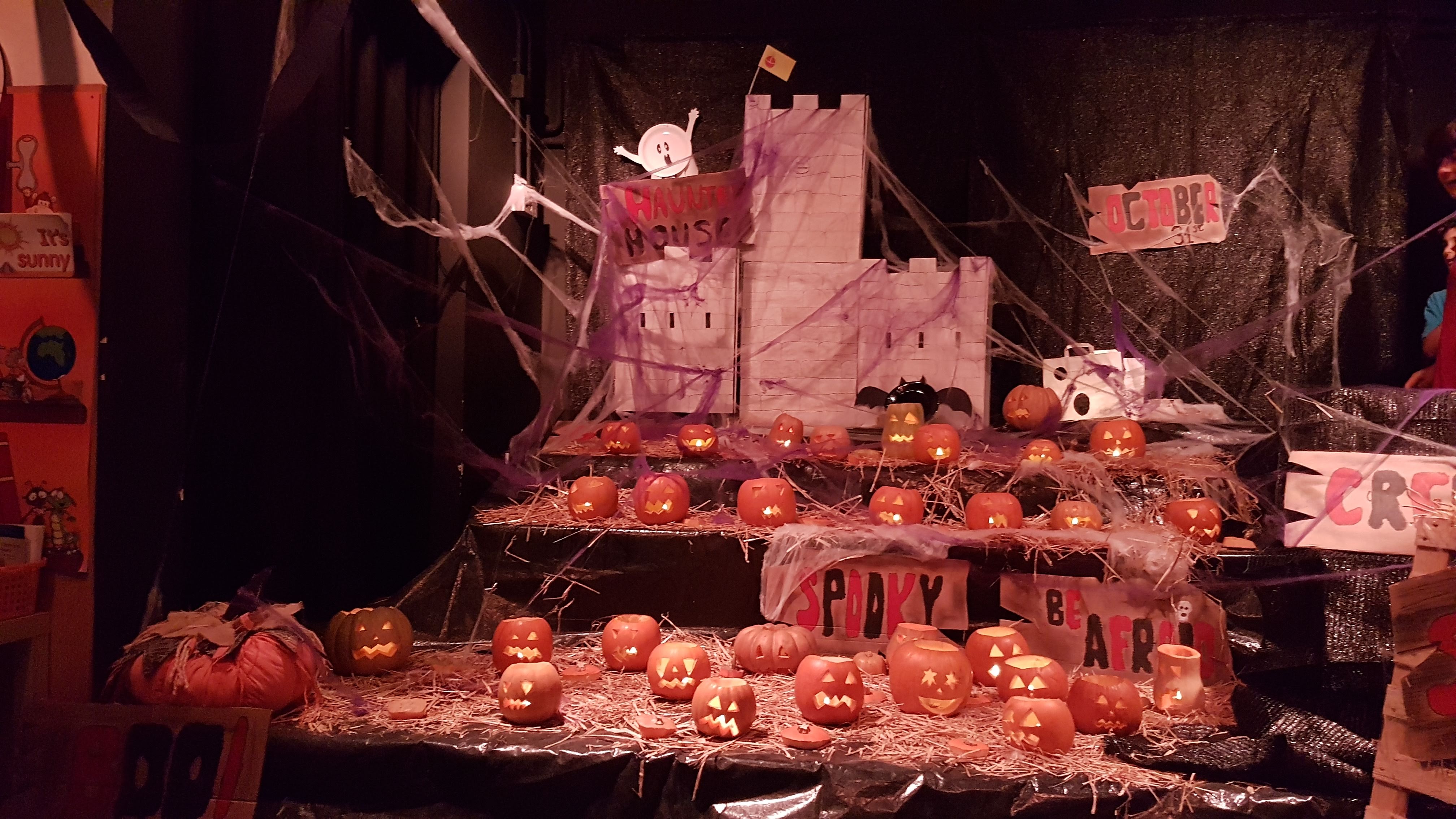 Hem preparat el Halloween col·laborant amb unes carbasses magnífiques per a la decoració del teatret més terrorífic.