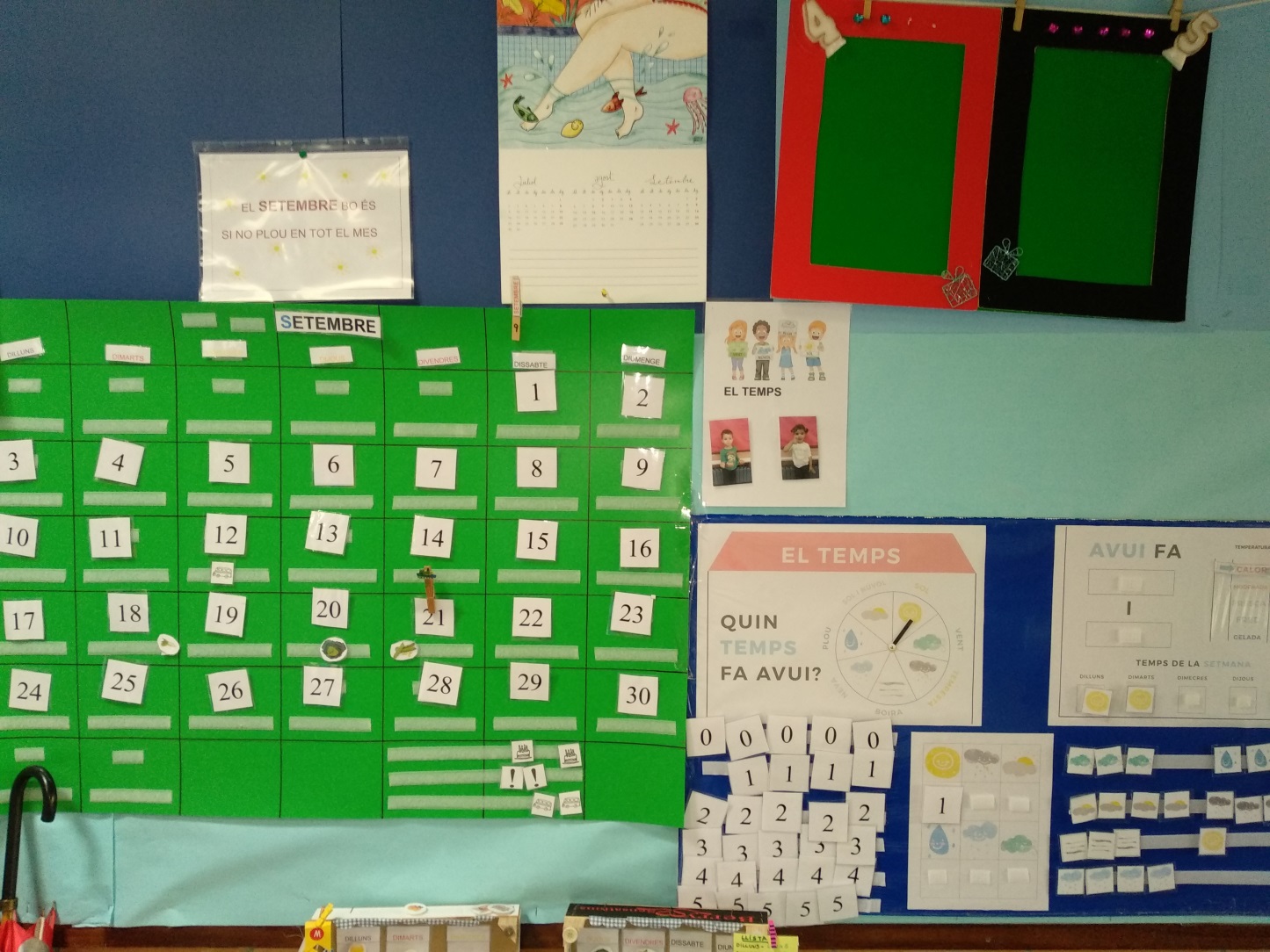 Amb un post-it poden dibuixar-escriure el temps, el dia i el mes. També podeu utilitzar el calendari de casa.