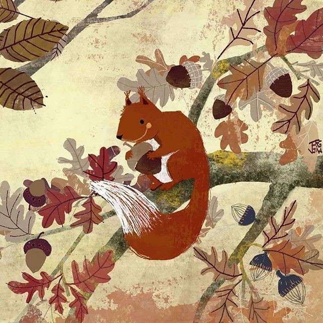 Cada dia sortien els dos a buscar aglans; el porc senglar per terra i l’esquirol pels arbres.