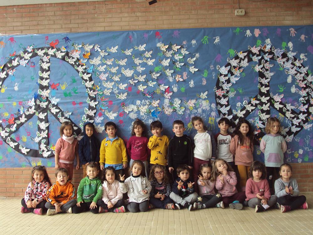 Hola famílies, Aquestes setmanes a l’escola estem parlant de la Pau i, per això s’ha decidit fer un mural entre tots els nens i nenes. Els Pirates i les Pirates hem participat deixat les empremtes de les seves mans com a símbol del colom de la Pau.Ç