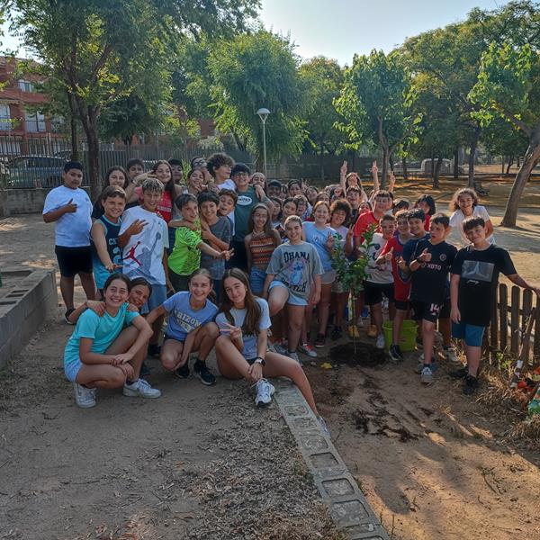 En acabar primària, els alumnes de 6è plantem un arbre al pati de sorra. Serà un símbol del nostre pas per l’escola i, quan passin els anys i hi tornem, podrem recordar com van ser els anys d’escola que vam viure sent infants.