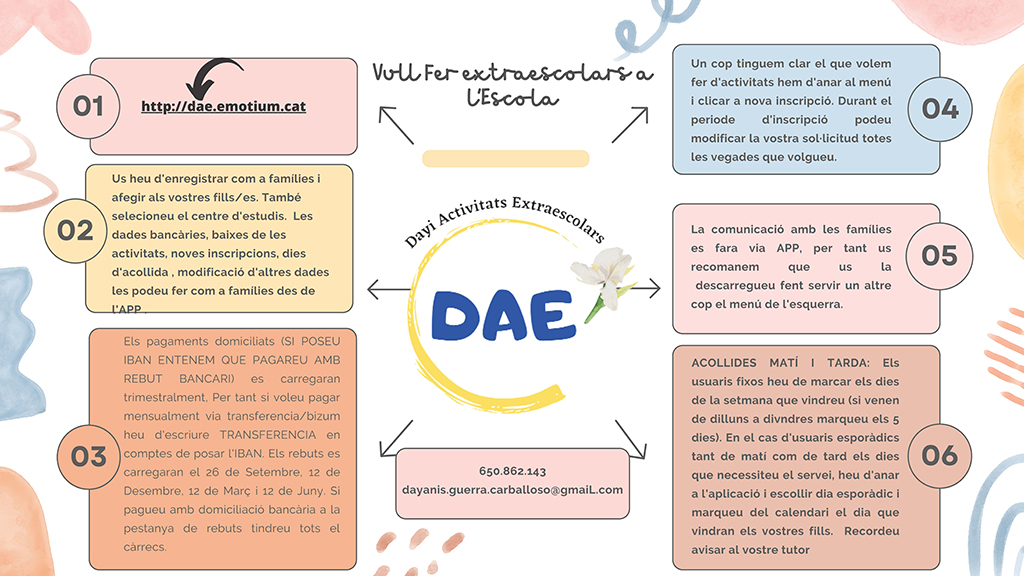 Qualsevol dubte podeu trucar al 650 862 143 o enviar correu a dayanis.guerra.carballoso@gmail.com