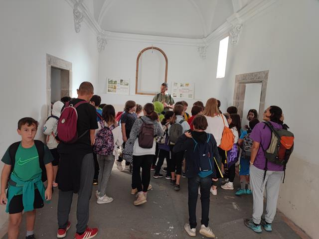 Després vam començar a caminar i, de seguida, vam arribar a una petita ermita que era grana i blanca. Vam seure a fora i ens van explicar el seu origen i el seu estil arquitectònic però quan hi vam entrar vam poder veure-hi molt poc perquè l’estaven restaurant.