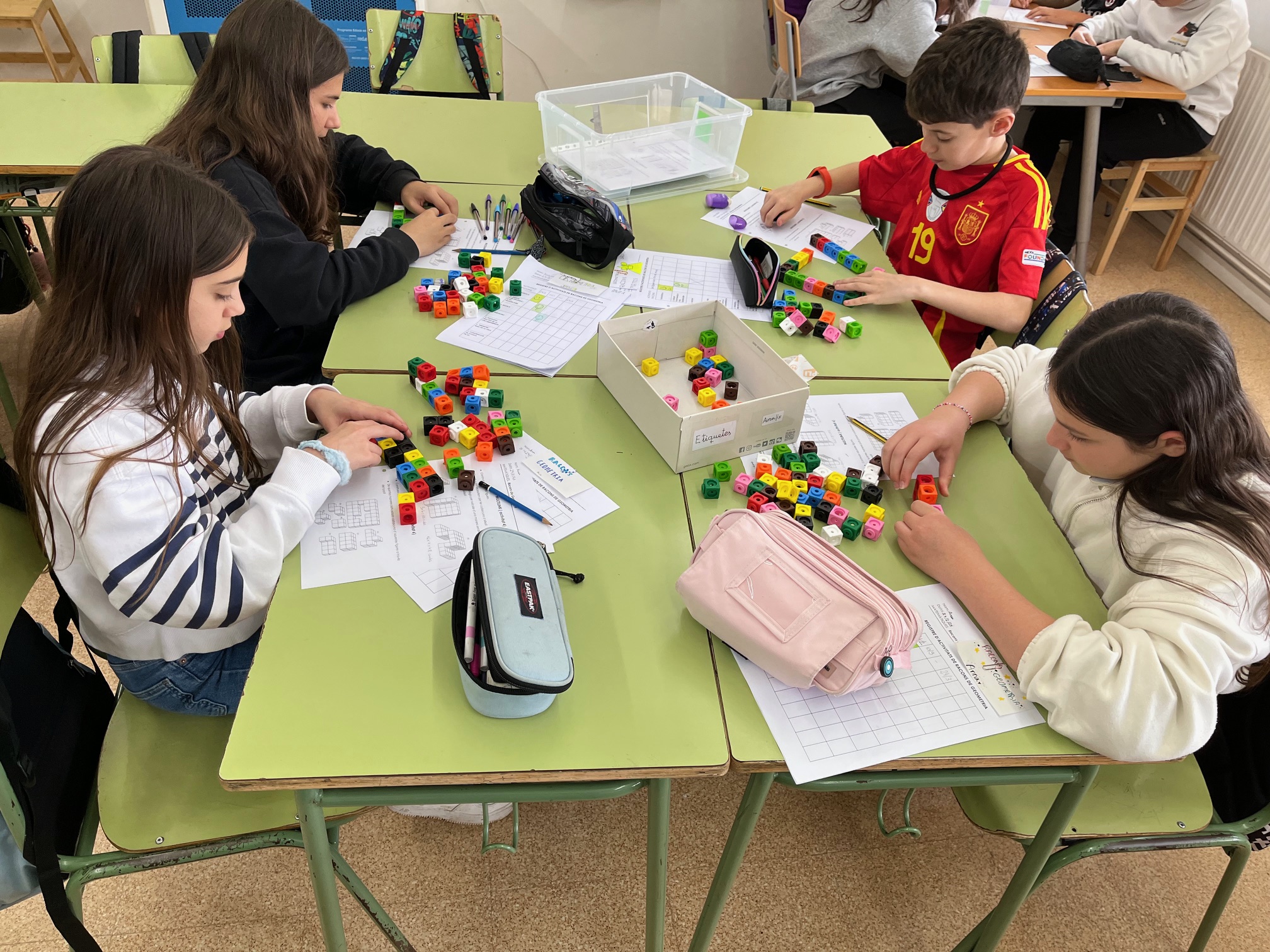 Fem moltes activitats de diferents tipus com ara geoplà, multicubs, estadística, mesurar la pista de l’escola, etc. Ens divertim molt fent aquestes activitats perquè aprenem molts continguts de matemàtiques que no sabíem. Aquests racons serveixen també per poder treballar en grup.