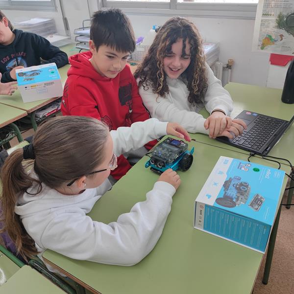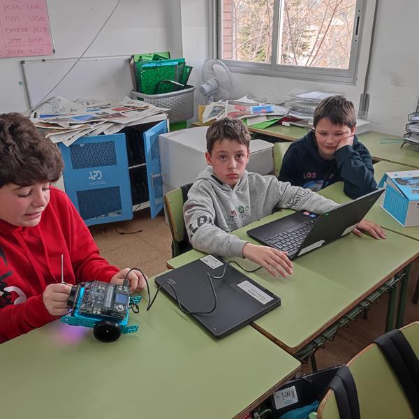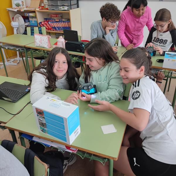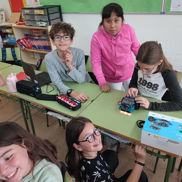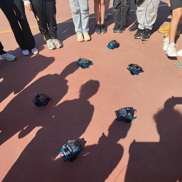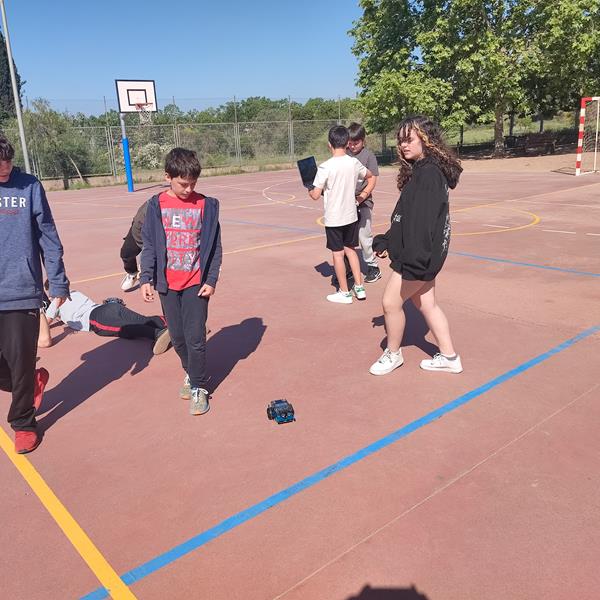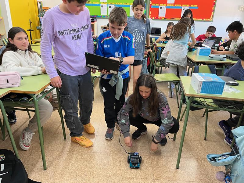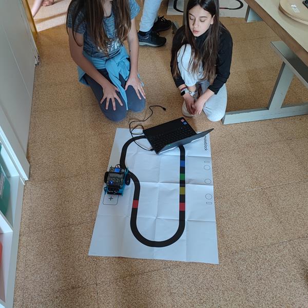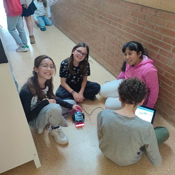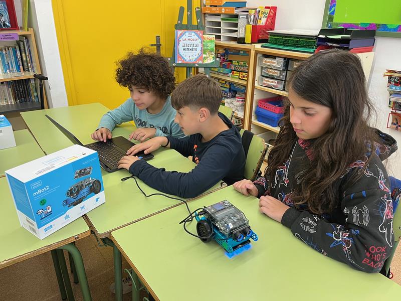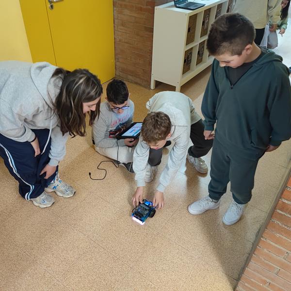 Durant el mes d’abril, les classes de sisè A i B, van portar a terme activitats amb un robot, vam programar robots mBots. Ho vam fer gràcies a un programa informàtic que es diu mLink, un programa que té les possibilitats de programar el teu robot fent llums de molts colors, movent-se als costats, córrer cap endavant i cap enrere, fer sons… Inicialment vam fer servir un codi d’exemple ja que era el primer cop que ho fèiem i era un món nou per nosaltres. Abans de programar-lo, ho vam muntar amb les seves peces. Ho vam treure al passadís de l’escola per provar com funcionava a llargues distàncies. Vam desconnectar-lo i seguia funcionant, només el connectàvem per tornar-lo a programar i carregar un nou codi. Va ser una activitat molt divertida de fer, vam estar rient tota l’estona i, a la vegada, sorpresos de tot el que era capaç de fer aquell robot. Les dues classes estem encantades amb aquesta activitat. En una segona i tercera sessió vam fer un nou codi per seguir un circuit i també per detectar amb sensors altres objectes i robots i evitar xocar entre ells. Ens agradaria aprofundir per fer més activitats com aquesta.