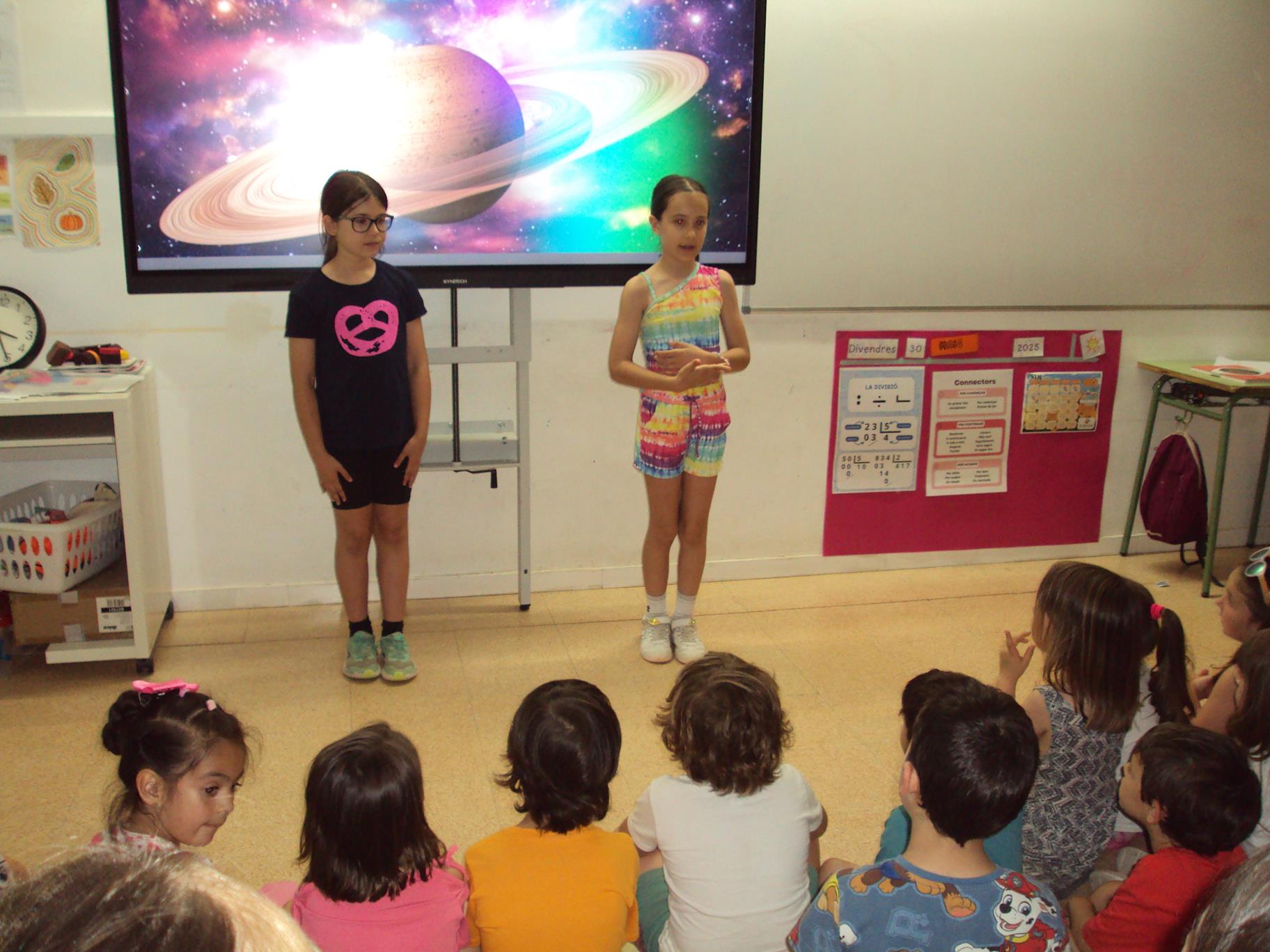 Per finalitzar el projecte, el divendres 30 de maig, la classe d’I4 dels Astronautes va anar a compartir tot allò que havíem après als nens i nenes de la classe dels Saturns.