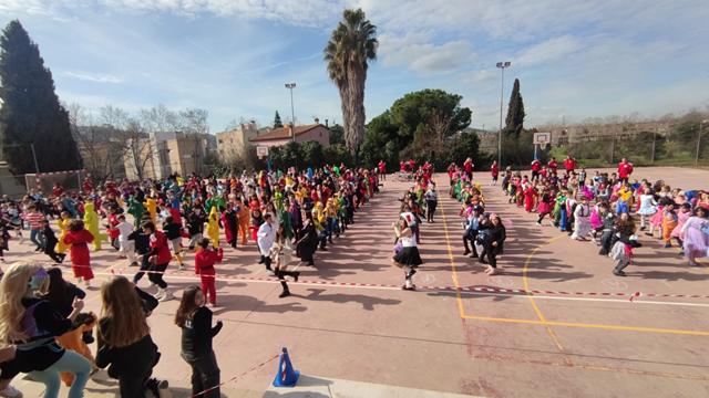 El divendres el judici fet, va enviar al carnestoltes a descansar tot l’any i nosaltres ben disfressats vàrem desfilar i ballar al nostre pati, davant de moltes famílies.