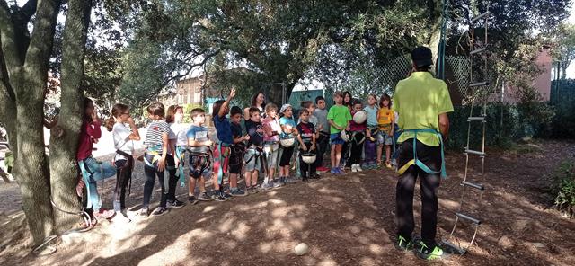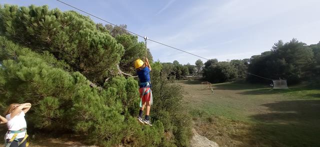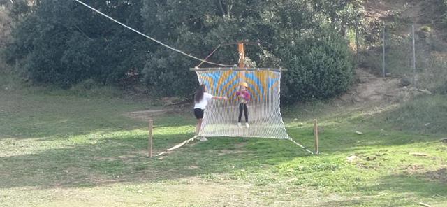 Hem conegut als monitors i la casa de colònies que té molts espais diferents. Després hem dinat i hem començat a fer les activitats d’entrenament per ser astronautes. Avui ha tocat fer entrenament d’escalada per saber pujar a la nau i vol a la tirolina. Ens ho hem passat “pipa” i ha estat tot un repte que hem superat, tot i que al començament ens feia una mica de respecte.