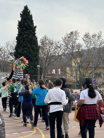 El dimarts 6 a la tarda va arribar el carnestoltes acompanyats dels alumnes de 6è-B al nostra pati, on tothom amb molta alegria, li vàrem donar la benvinguda i vàrem escoltar el pregó i conèixer de primera mà les consignes d’aquest any: venir elegants, amb un pentinat ben original i disfressats l’últim dia.