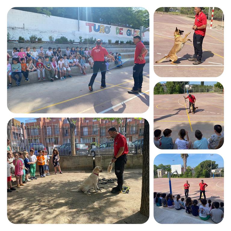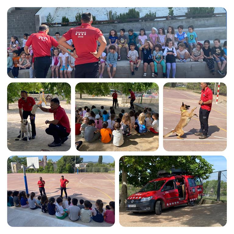 Avui hem rebut una visita molt especial. Els bombers Andreu i Martí han vingut a l’escola amb el seu grup de recerca caní: la Duna, l’Otto, la Lia i el Xot.  .