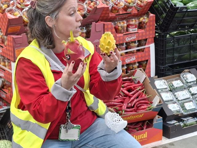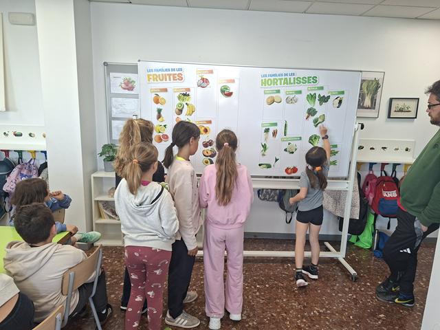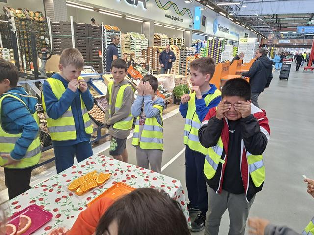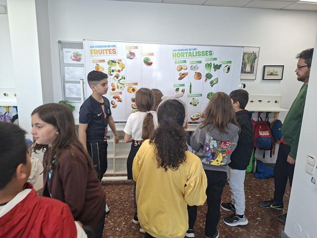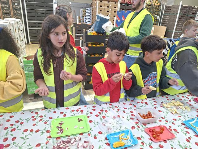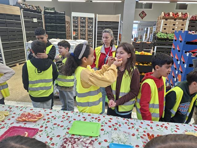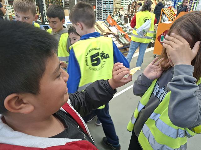 La visita va continuar amb un tast de fruites i hortalisses on un company o companya ens donava a provar un producte que no vèiem (estàvem amb els ulls tancats). Les cares que posàvem deixaven clar si ens agradaven o no.