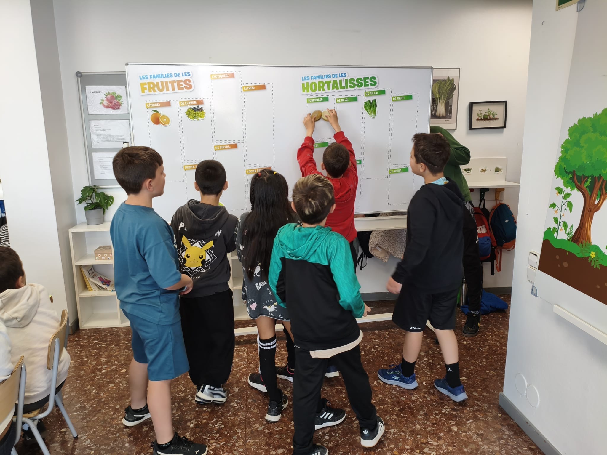Per començar el dia, en Teo i l’Anna, ens van fer una activitat de classificació de verdures i hortalisses segons el seu origen. Seguidament, vam passejar per dins dels pavellons de venda de fruita mentre en Teo ens explicava curiositats dels aliments que ens anàvem trobant. El moment més divertit va ser quan vam fer el joc dels sabors, en el que havíem de descobrir quin aliment era el que estàvem tastant. Seguidament, van ensenyar-nos el procés d’empaquetament de la patata i ens van regalar un sac de 2 quilos a cadascú!!!