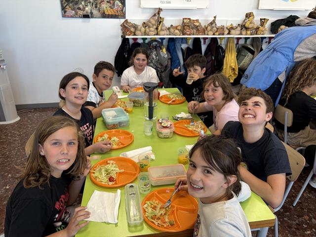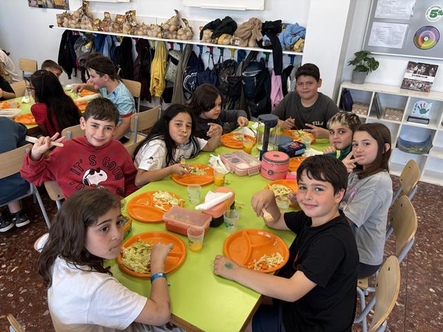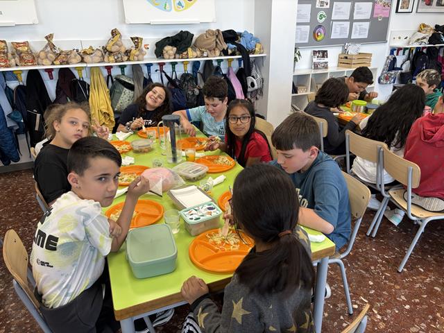 A l’hora de dinar encara ens esperaven més aventures. Ens van oferir el primer plat i les postres, tot seguint la dieta saludable de 5 al dia!