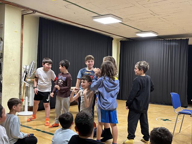 El passat 25 de Març els i les alumnes de 4t A van poder gaudir d’un taller de teatre impartit pel nostre ja conegut Carlos que, com sempre, els va fer gaudir amb les seves activitats i ocurrències. Van treballar l’expressió de les emocions i la improvització, sobretot. També va ser molt interessant l’activitat de reflexionar sobre en què pensaven quan expressaven una o altra emoció. Una matinal molt interessant a l’Ateneu.