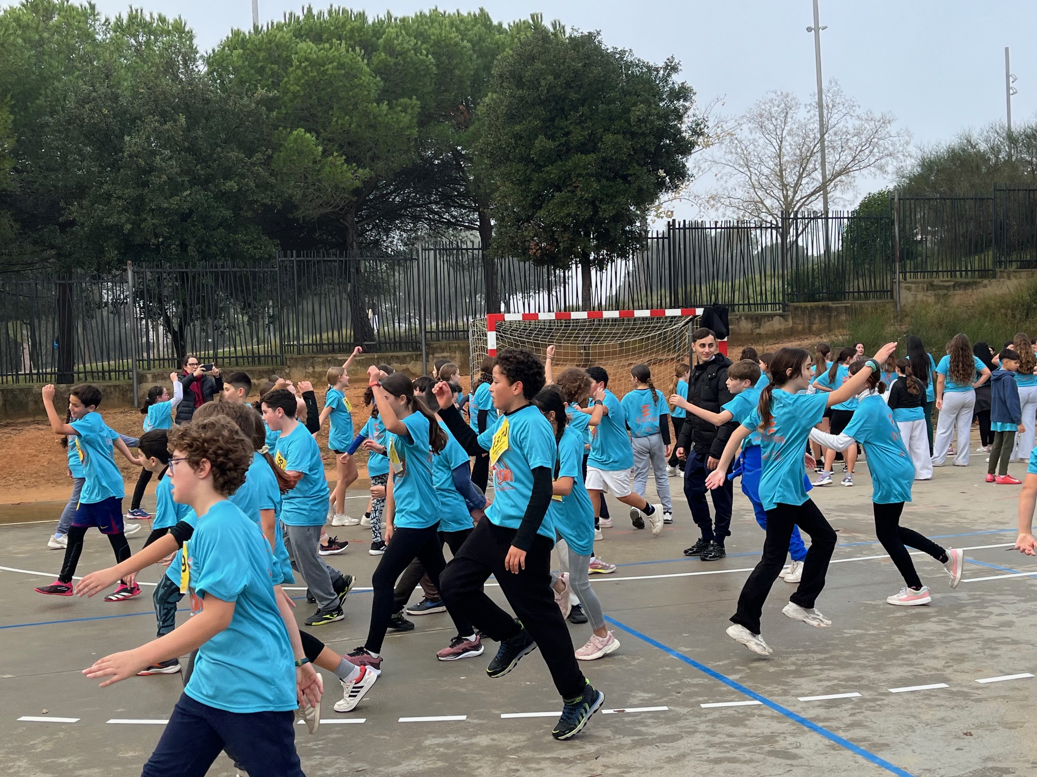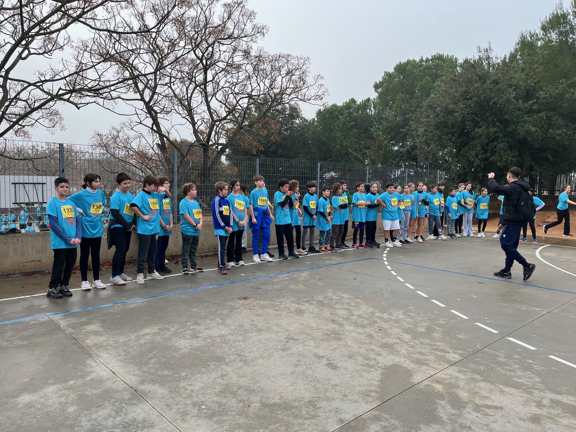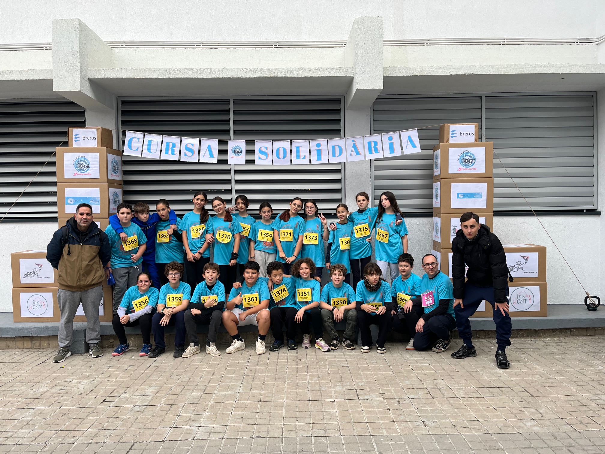 Aquest dijous, 18 de desembre, hem anat al Forat del Vent a fer la cursa Solidària. Ens van donar una samarreta blava amb un dorsal. Només arribar vam començar a escalfar i  a fer diferents activitats durant uns 20 minuts.