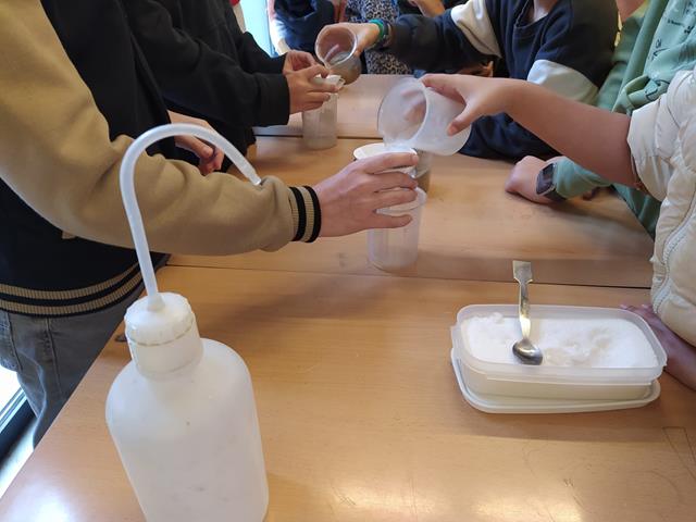 Dins del projecte d’Hort de Cicle Mitjà, aquesta setmana l’alumnat de 3r i 4t ha fet una visita a l’Institut Gorgs. Allà han pogut gaudir d’una Fira on l’alumnat de 2n de l’ESO ens ha parlat dels diferents tipus d’aigua que existeixen, dels seus estats i de la quantitat d’aigua que gastem en un simple rentat de mans, entre moltes altres coses.