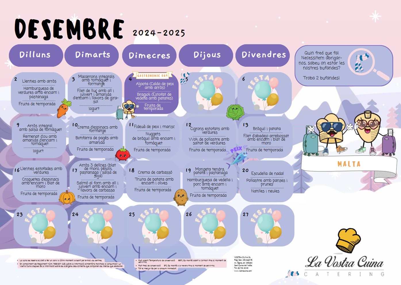 Bon dia, ja tenim el menú del mes de novembre.Recordeu que en aquest enllaç podreu consultar la resta de menús que es preparen segons les necessitats. Click aquí