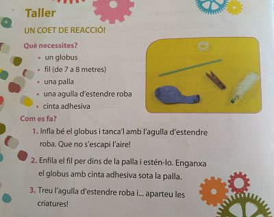 Amb un globus, un tros de cinta adhesiva, una canyeta, una agulla d´estendre i un fil hem fet el muntatge.