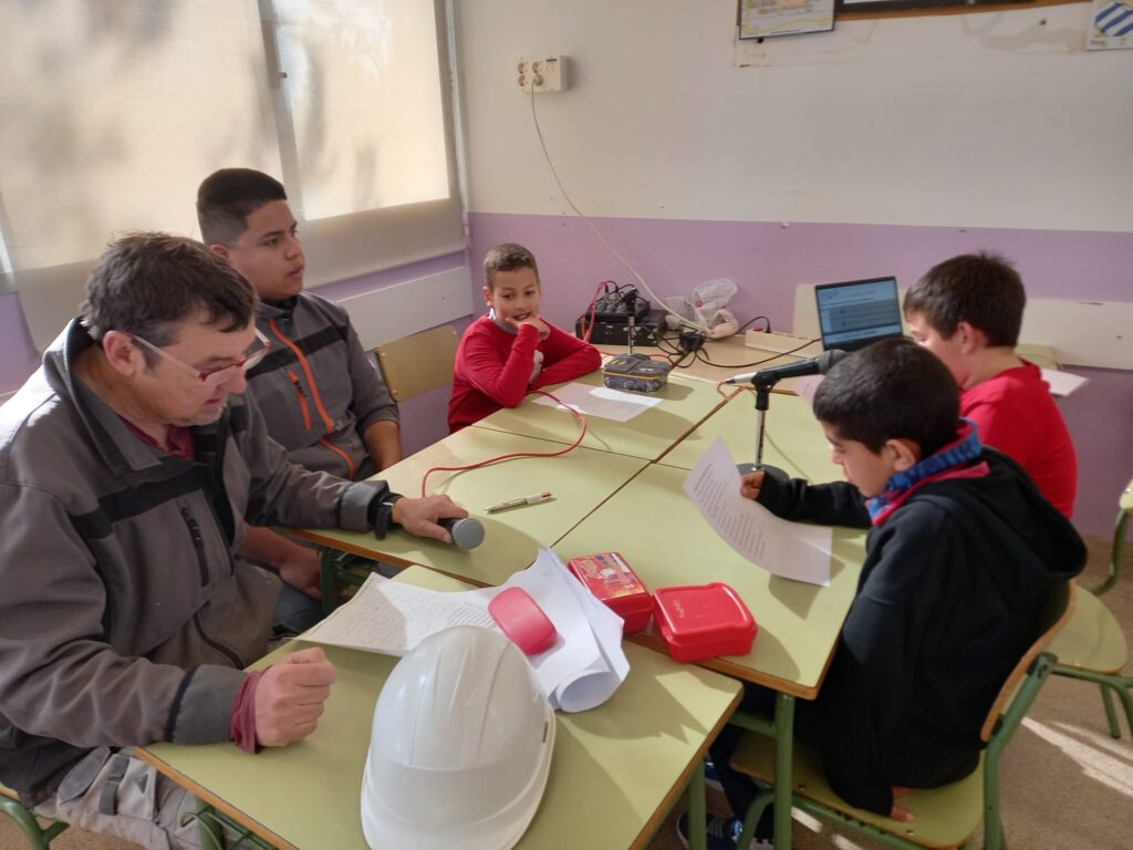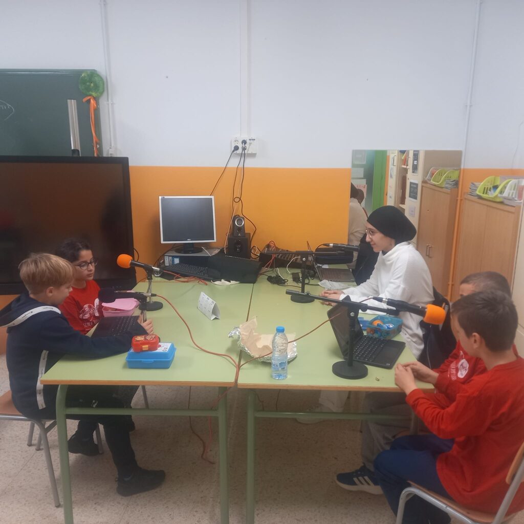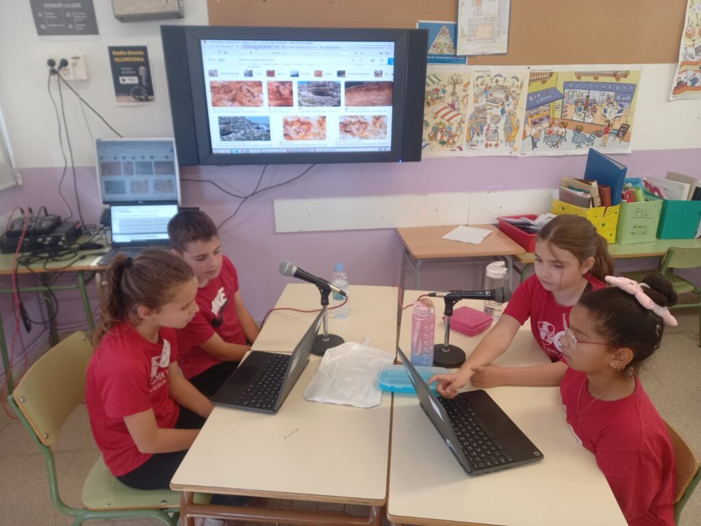 En petit grup, l’alumnat de 4rt elabora un programa de ràdio, amb continguts relacionats amb la classe, l’escola i/o el poble i el seu entorn.