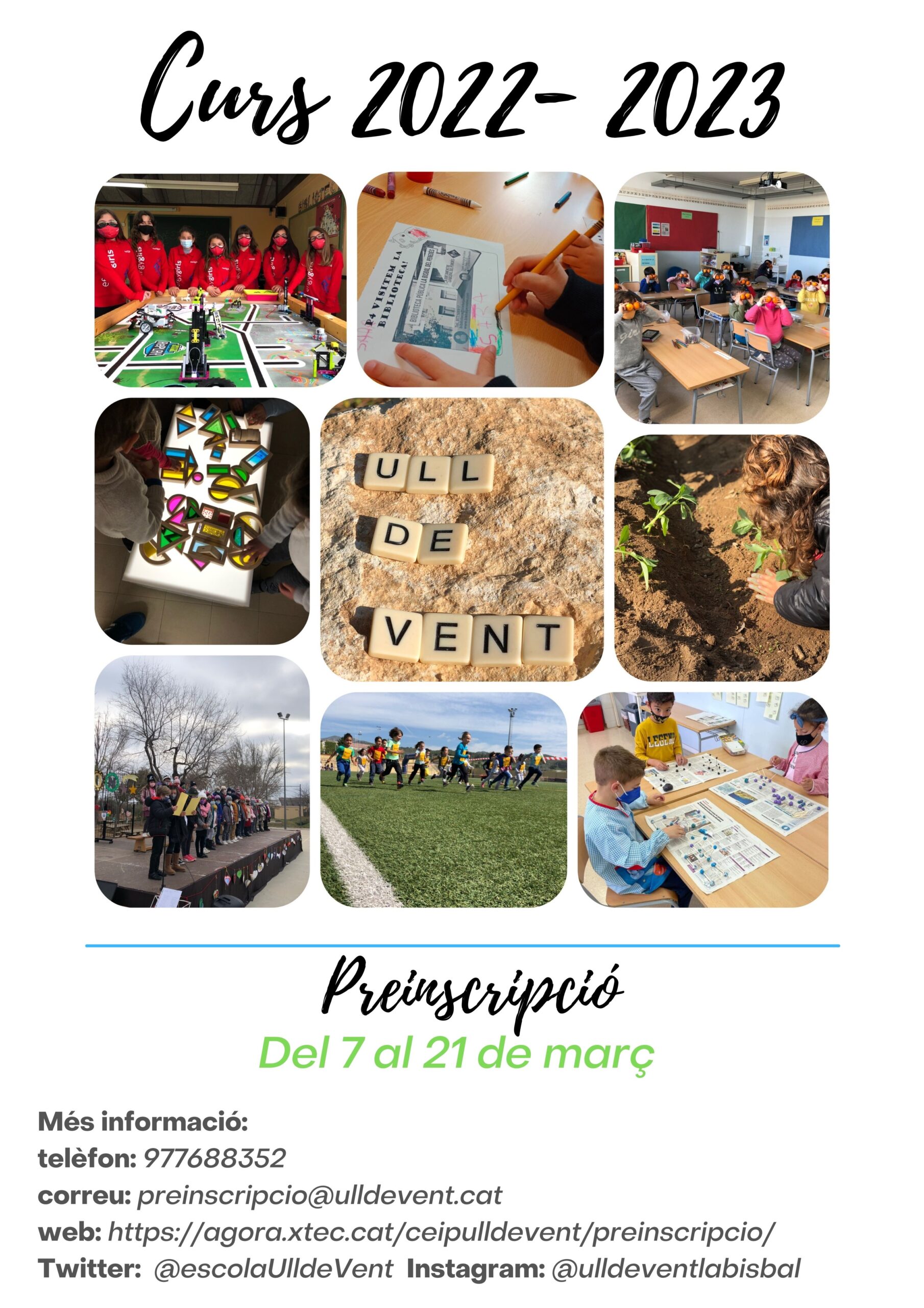 Tanmateix, si teniu dubtes, ens podeu trucar a l’escola al 977 68 83 52. Us podrem atendre millor els dimecres i els divendres.