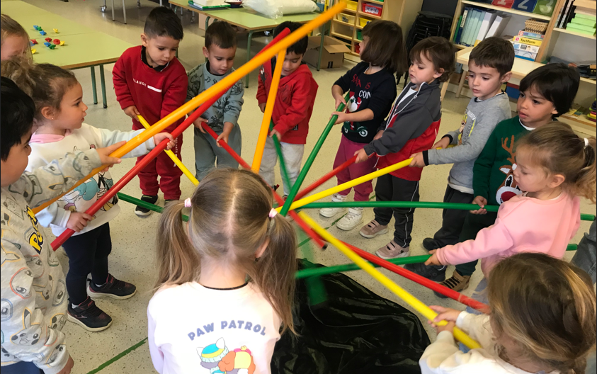 Com ja sabeu, un dia a la setmana els infants d’educació infantil fan ambients. Tenim 5 ambients: construccions, teatre, supermercat, jocs de taula; i aquest any hem incorporat l’ambient tecnològic. L’ambient tecnològic és un espai on ens apropem a la tecnologia d’una manera lúdica. Treballem el pensament computacional a través de jocs sense pantalles, amb