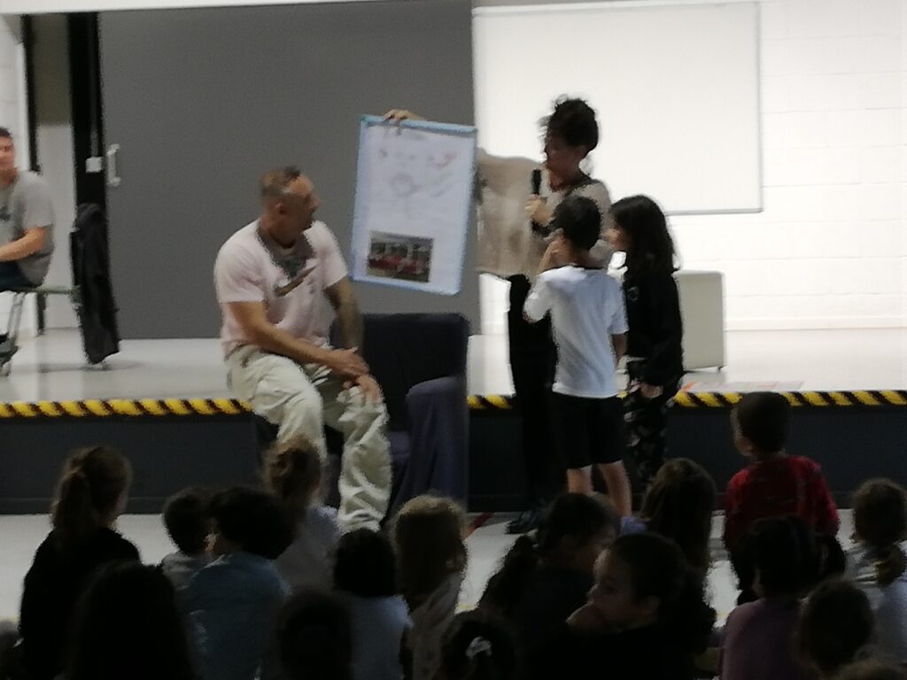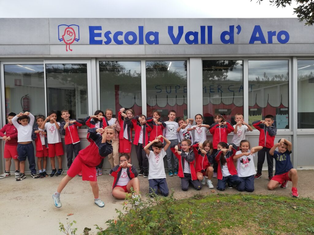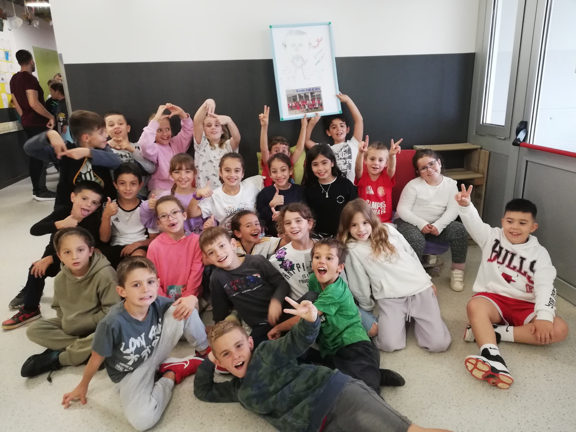 Avui, després del pati, l’hem acomiadat tots junts en el gimnàs. La nostra classe vàrem decidir dibuixar-lo entre tots i regalar-li amb una foto que ens hem a l’entrada de l’escola. Ahh, se m’oblidava!!! A la foto se’ns veu a tota la classe fent una A d’Aurelio amb les mans.