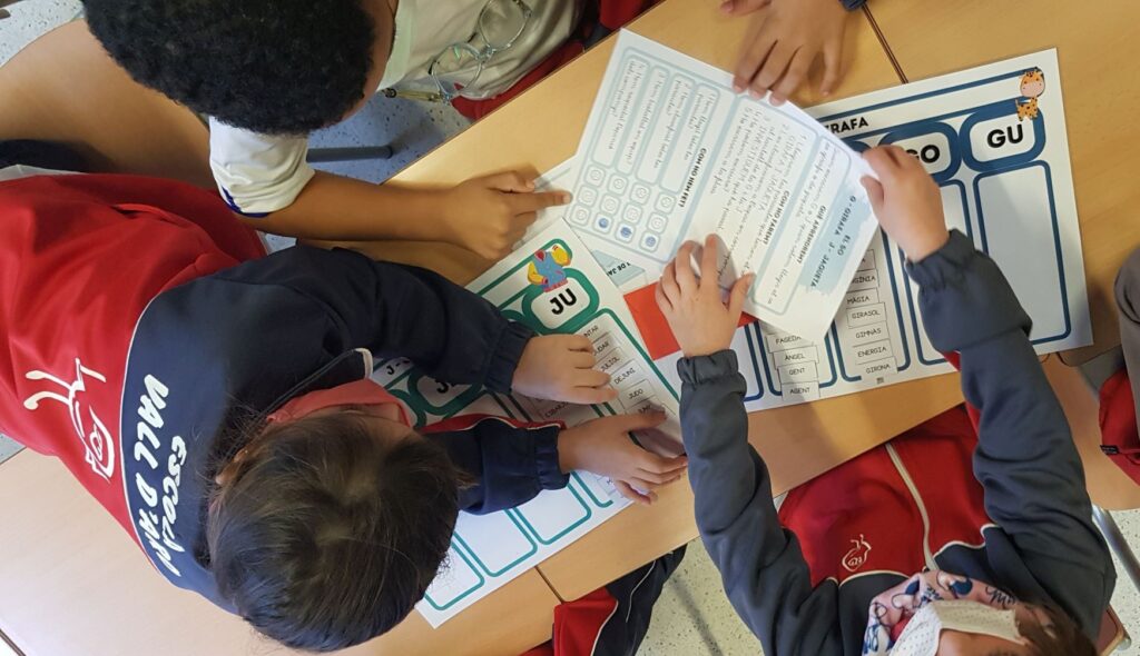 Aquesta setmana hem fet un joc en equip on hem descobert que per escriure el so de Jaqueta posem la J amb les vocals A, O , U, que són les vocals fortes i que per escriure el so de Girafa ho fem amb la G amb les vocals E, I, que són les dèbils.