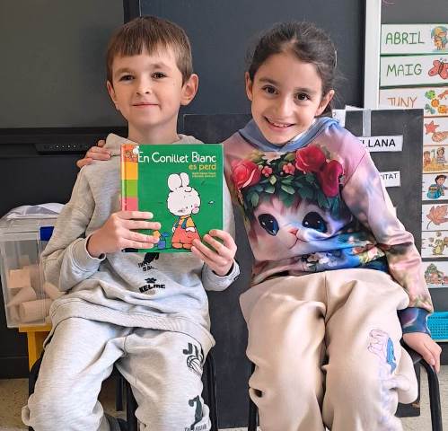 Tot i que la Nora i l’Ivan estaven una mica nerviosos, també estaven molt il·lusionats, i això s’ha notat des del primer moment. Han explicat el conte amb tendresa i seguretat, i els nens i nenes d’I5 han escoltat amb molta atenció, deixant-se endur per l’aventura del petit conillet blanc ✨👀.
