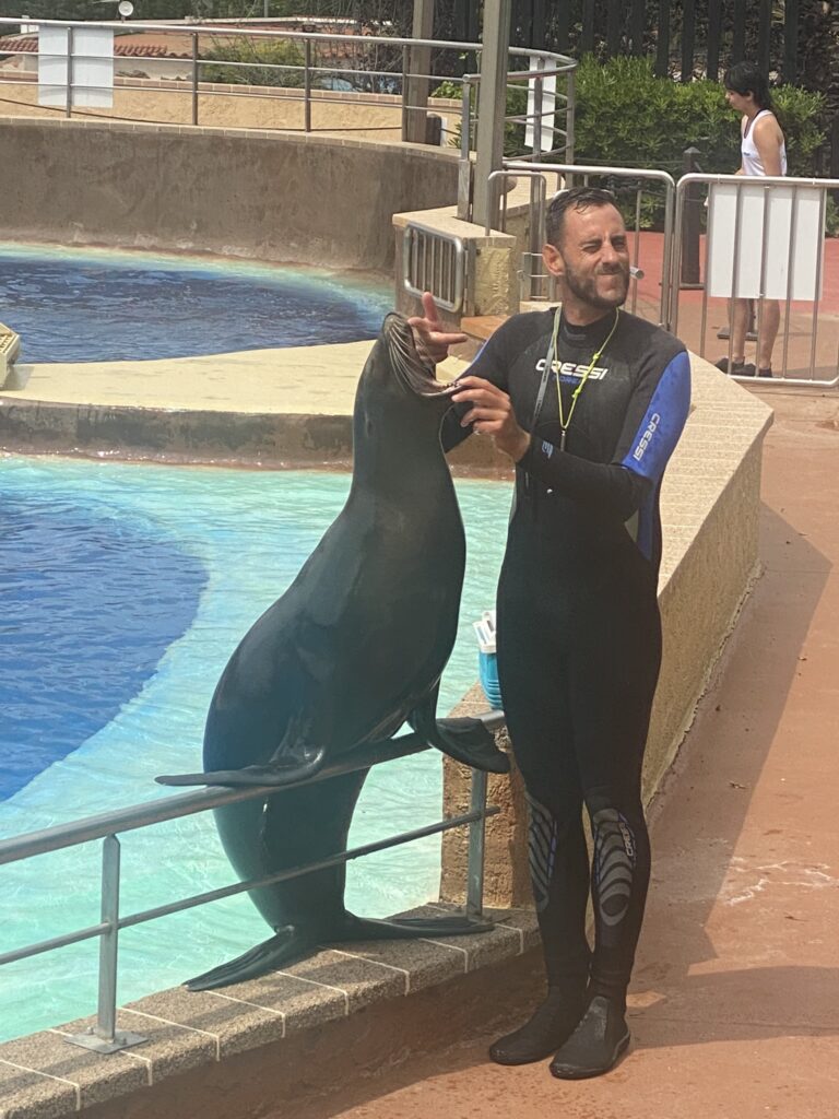 Vam veure un espectacle de dofins i ens van explicar com viuen aquests mamífers, que mengen, com neixen i com viuen allà.
