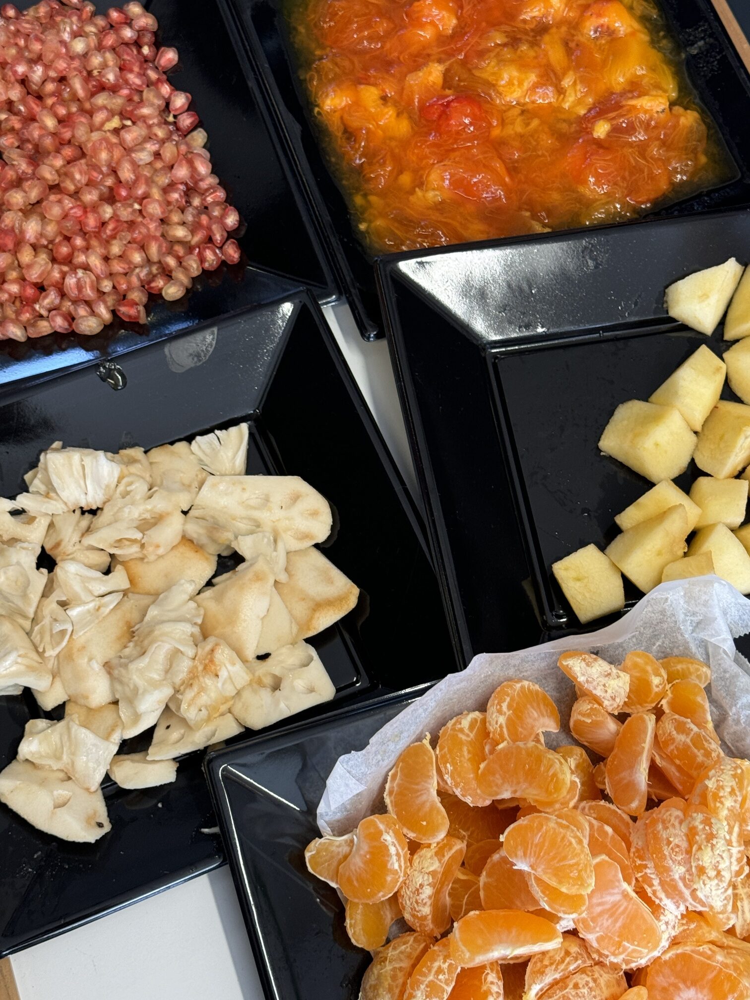 Alguns van poder descobrir fruits de la tardor que no coneixien i els infants nouvinguts van poder practicar amb el vocabulari català d’aquests aliments tot llepant-se els dits!