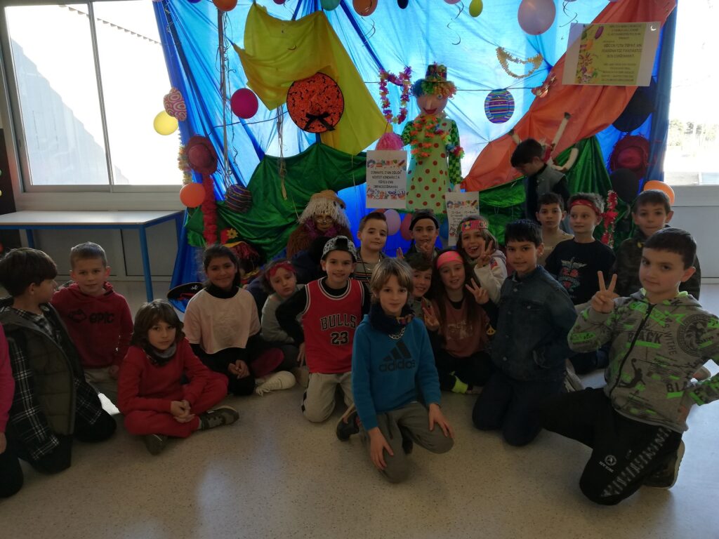 Durant aquests dies hem anat a l’escola vestits tal com ens ha marcat la Reina Carnestoltes. L’últim dia ens ha manat que podíem anar disfressats com volguéssim. Ha sigut divertit veure tantes disfresses a la classe i veure les mestres vestides de bruixes!!!. L’últim dia hem anat al pati i ho hem acabat celebrant amb un ball.