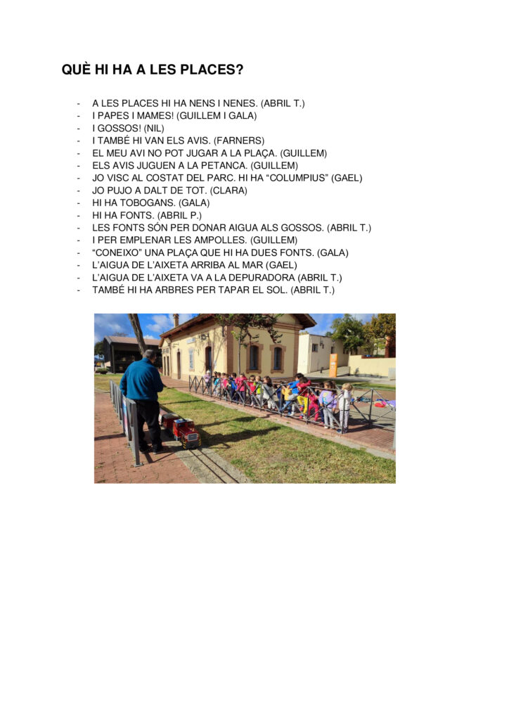 Enguany nosaltres ens hem centrat en uns espais del poble molt interessants, que són en realitat on ells i elles fan més vida social i on poden fer el que més els hi agrada: JUGAR!!! Aquests espais són les PLACES i els PARCS.