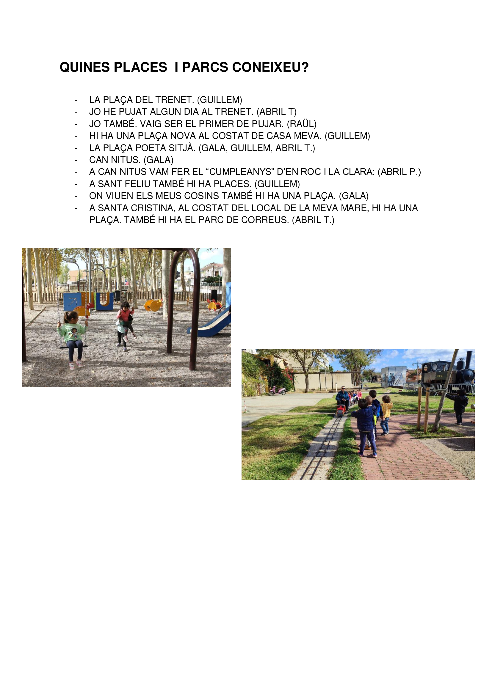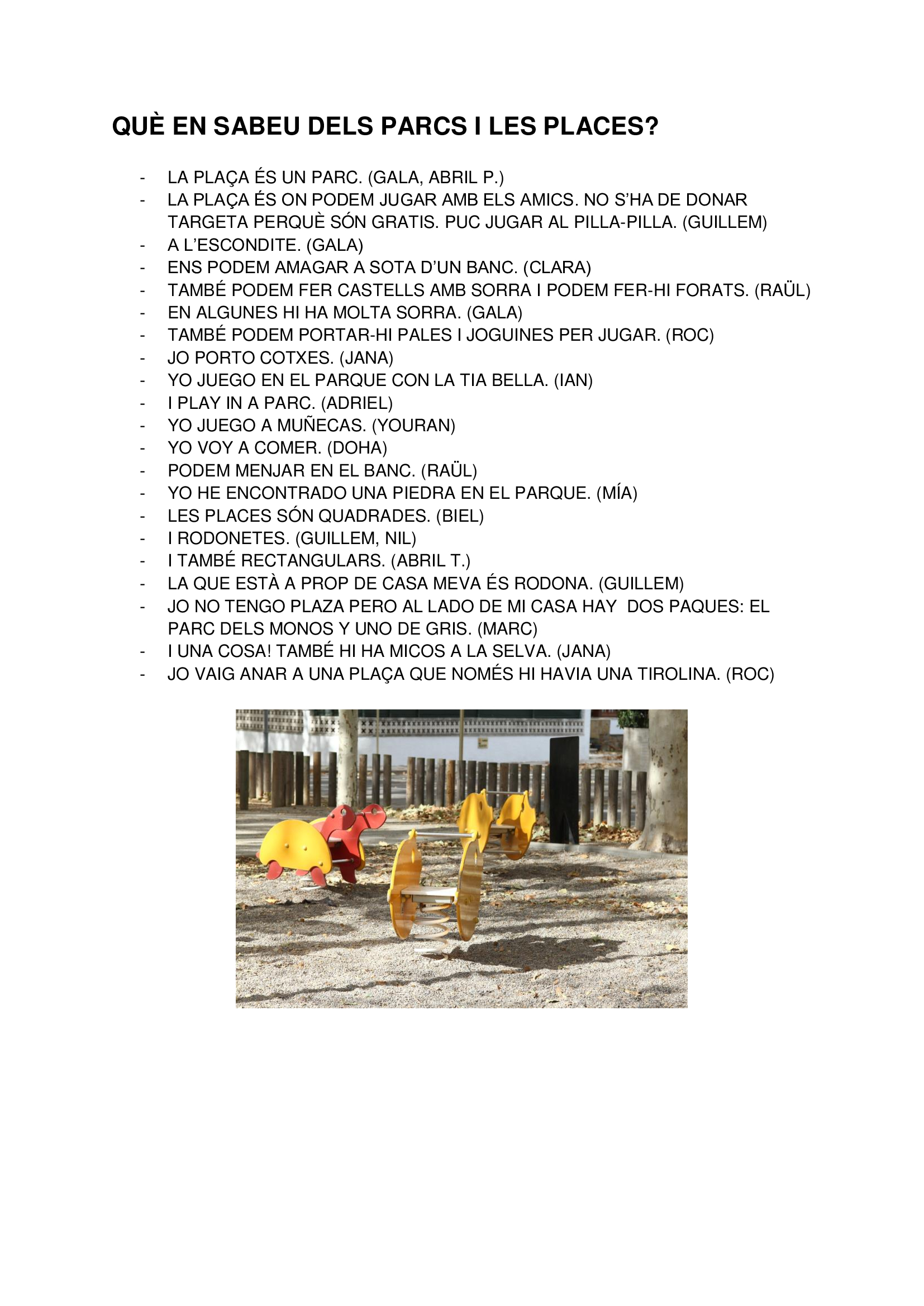 Vam encetar el tema preguntant si sabien alguna cosa sobre places i parcs. (Al final de l’article teniu un recull del que van dir els que van tenir ganes d’explicar-nos coses!)