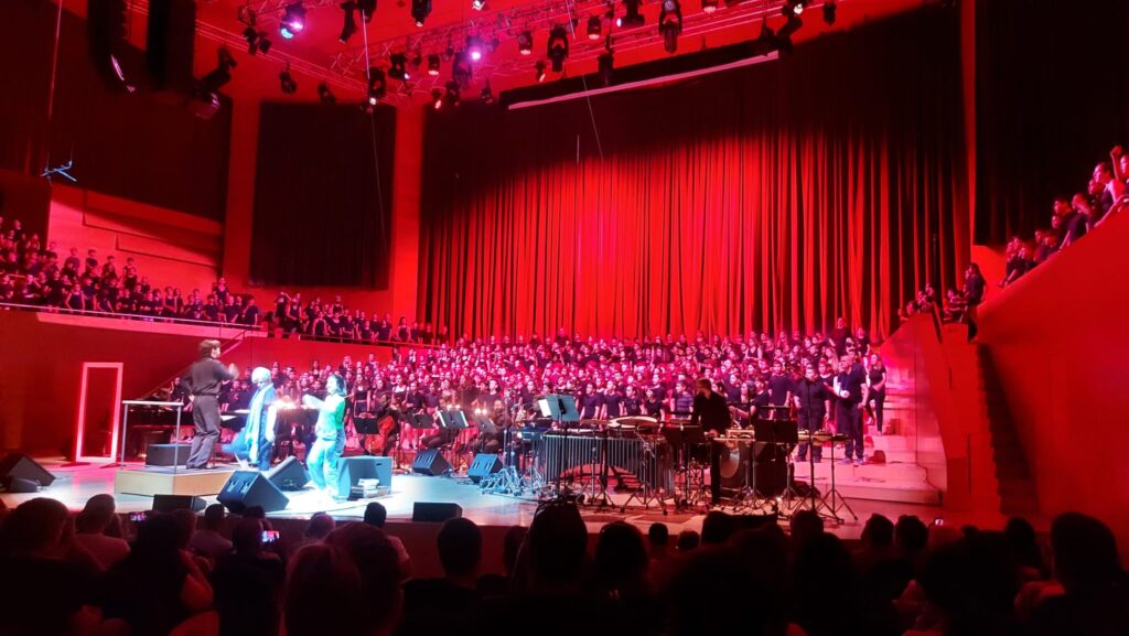 Ens hem emocionat quan hi hem entrat, l’hem vist tan gran!!! Tot i que alguns companys i companyes haurien preferit seure en les butaques laterals, ens ho hem passat molt bé, sobretot quan hem vist les famílies al públic. Hem ballat i hem cantat amb l’atrezzo que vam fer a plàstica l’obra “Clara, l’art per dins”. Després, quan hem sortit totes les famílies ens han fet fotos i hem pujat al bus per tornar a Castell d’Aro.