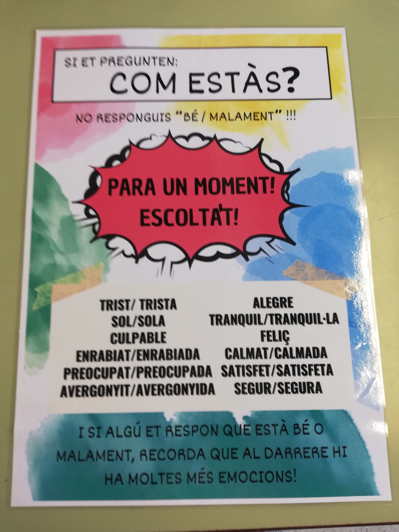 Vam sortir al pati i després de posar-nos en rotllana vam fer diversos jocs en els que havíem de dir com estàvem, com ens sentíem si els nostres comspanys/es ens deien o ens feien depèn de què,… Una vegada més vam aprendre que perquè un joc sigui divertit ens ho hem de passar tots bé, si no n!o és divertit.