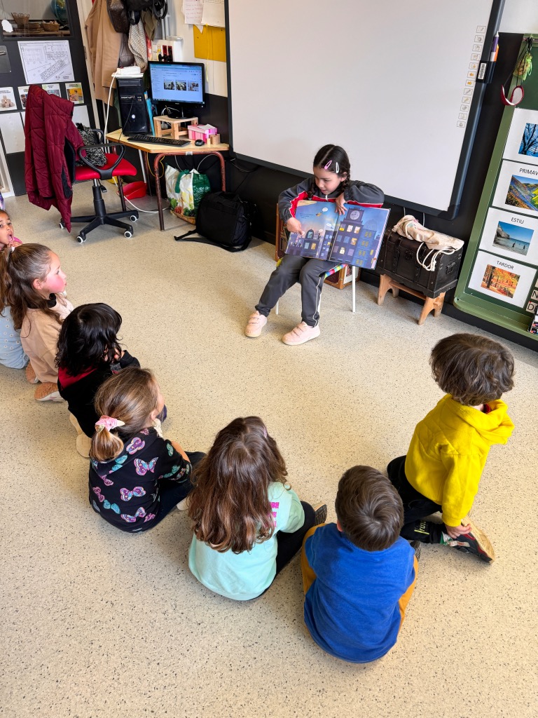 Cada setmana una nena o un nen de la classe serà l’encarregat/da d’anar a escollir un conte a la biblioteca de Platja d’Aro. Un cop a les seves mans l’hauran de preparar per a poder explicar-lo a l’aula.