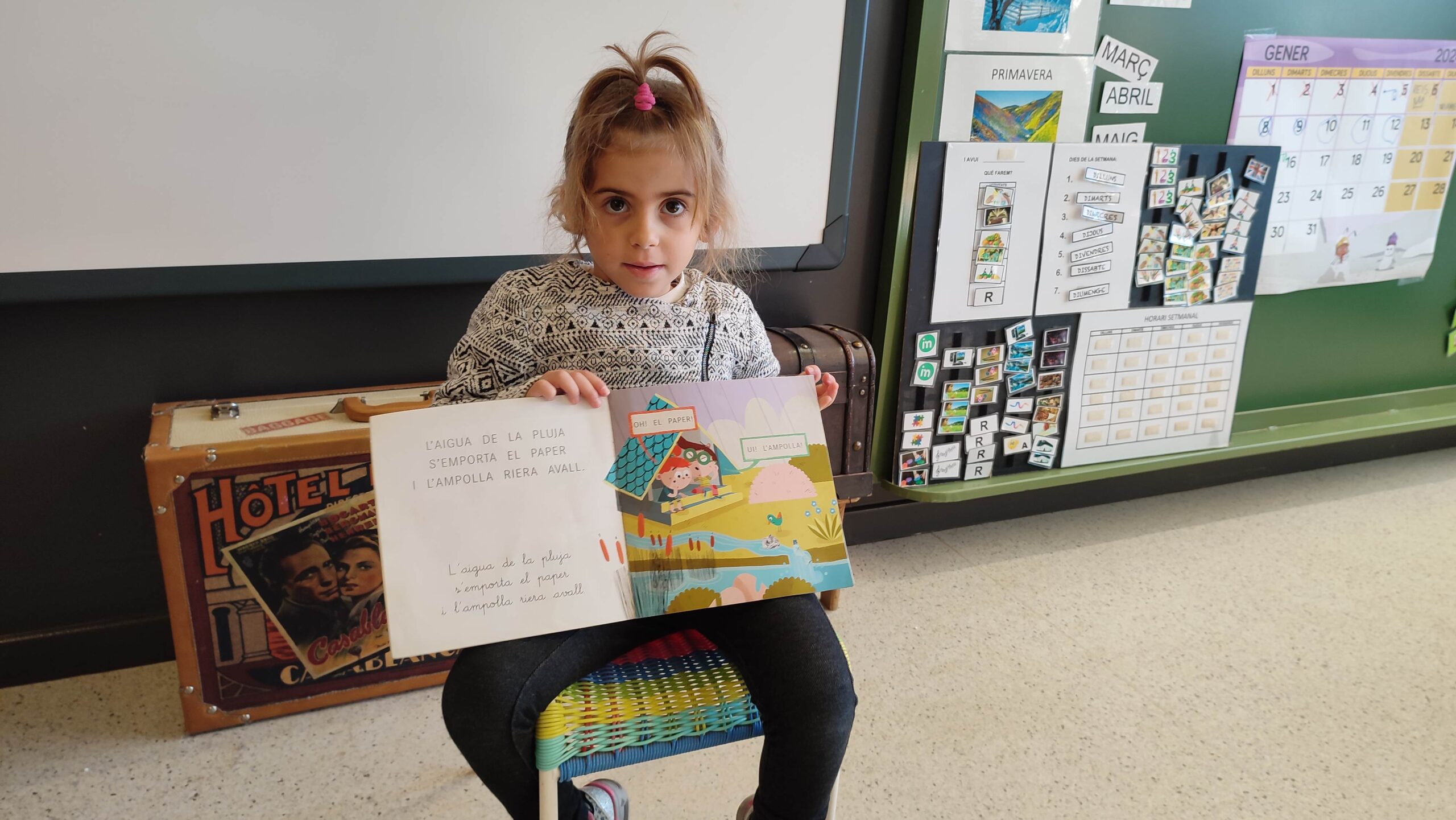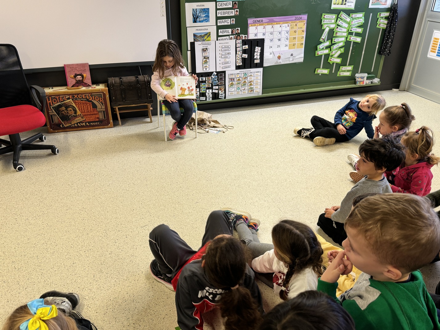 Cada setmana una nena o un nen de la classe serà l’encarregat/da d’anar a escollir un conte a la biblioteca de Platja d’Aro. Un cop a les seves mans l’hauran de preparar per a poder explicar-lo a l’aula.
