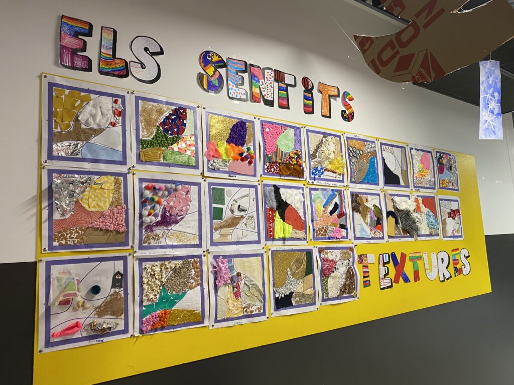 Famílies aquí teniu el nostre panell de textures!! Primer de tot donar-vos les gràcies per la col·laboració! Els nens i nenes han fet molt bona feina i hem pogut veure textures molt diferents! Cada nen/a s’ha fet una foto amb la seva textura i al final hem creat un mural sencer! Com hem anat treballant