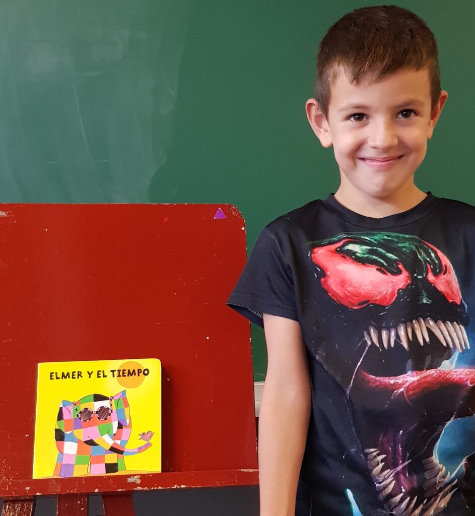 Avui en Pau ens ha explicat el conte el conte “Elmer y el tiempo”. L’Elmer és un elefant de colors. Ha sigut un conte molt bonic. La pàgina que més ens ha agradat ha sigut la del vent, l’Elmer volava pel cel! També la pàgina on l’Elmer veia figures en el núvols.