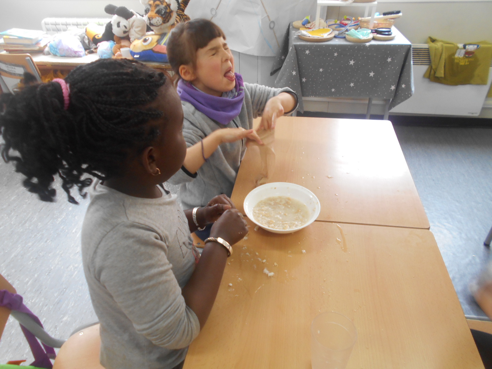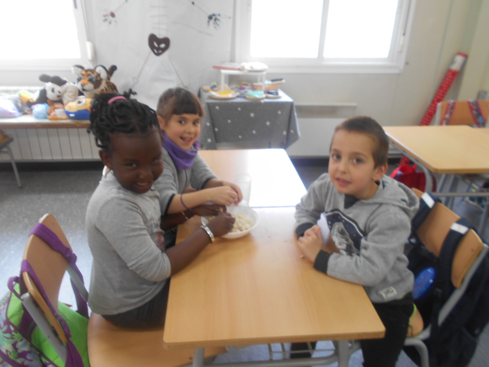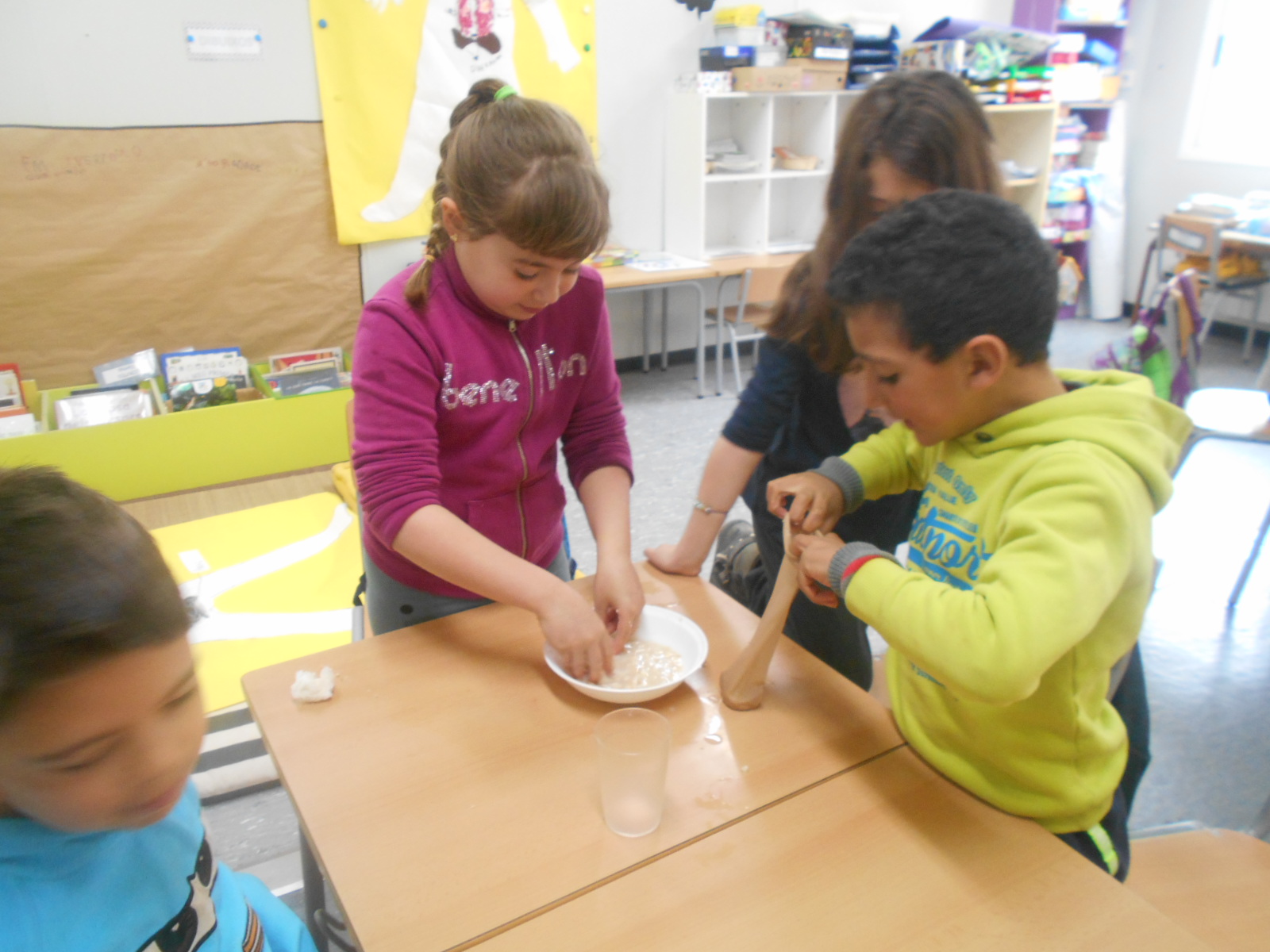 - trossegem pa de motlle i el fiquem dins el bol (respresenta el procés que fa el pa a la boca quan mosseguem)