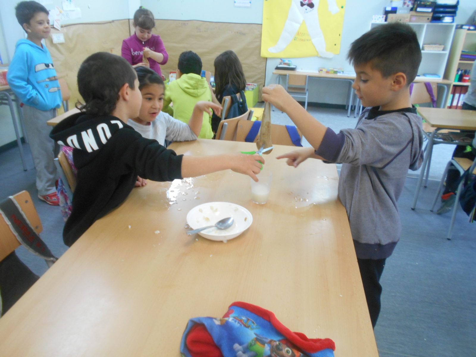 - afegim vinagre i remanem tot junt (el vinagre respresenta el suc gàstric que ajuda a desfer els aliments)