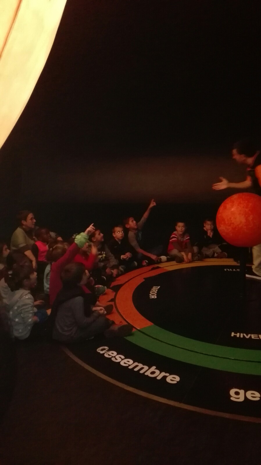 Vam visitar el museu, el bosc inundat, el parc exterior i a més vam fer una activitat dirigida a dins el PLANETARI BOMBOLLA. Dins d’aquest vam descobrir el nostre planeta terra, el moviment de la lluna i el sol, perquè tenim dia i nit, els mesos de l’any i les estacions, els diferents planetes del sistema solar, el tamany i les característiques de cada planeta, i per últim, ens vam asseure sota una cúpula on ens van ensenyar les estrelles i els seus noms mentre ens explicava una història.