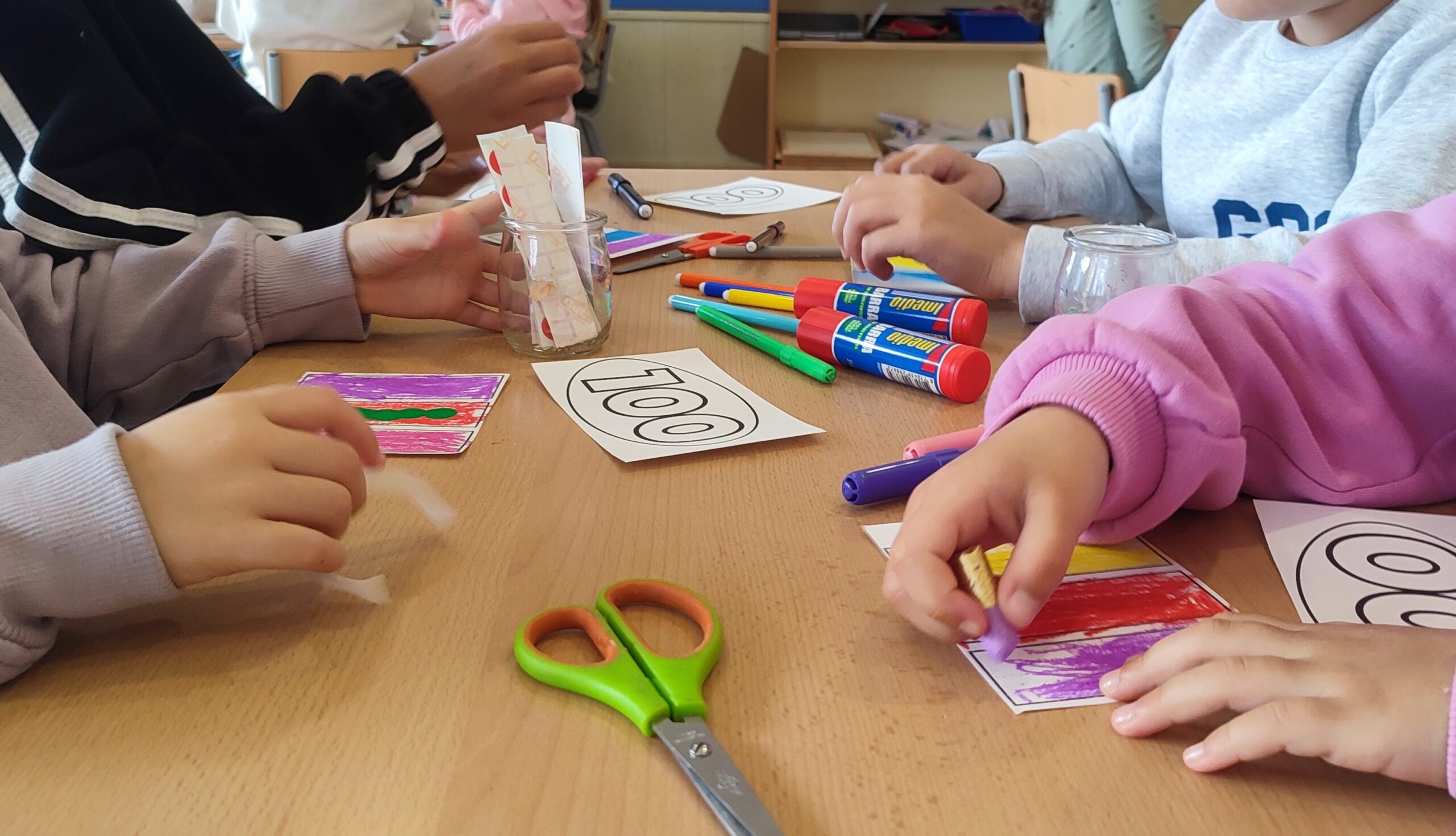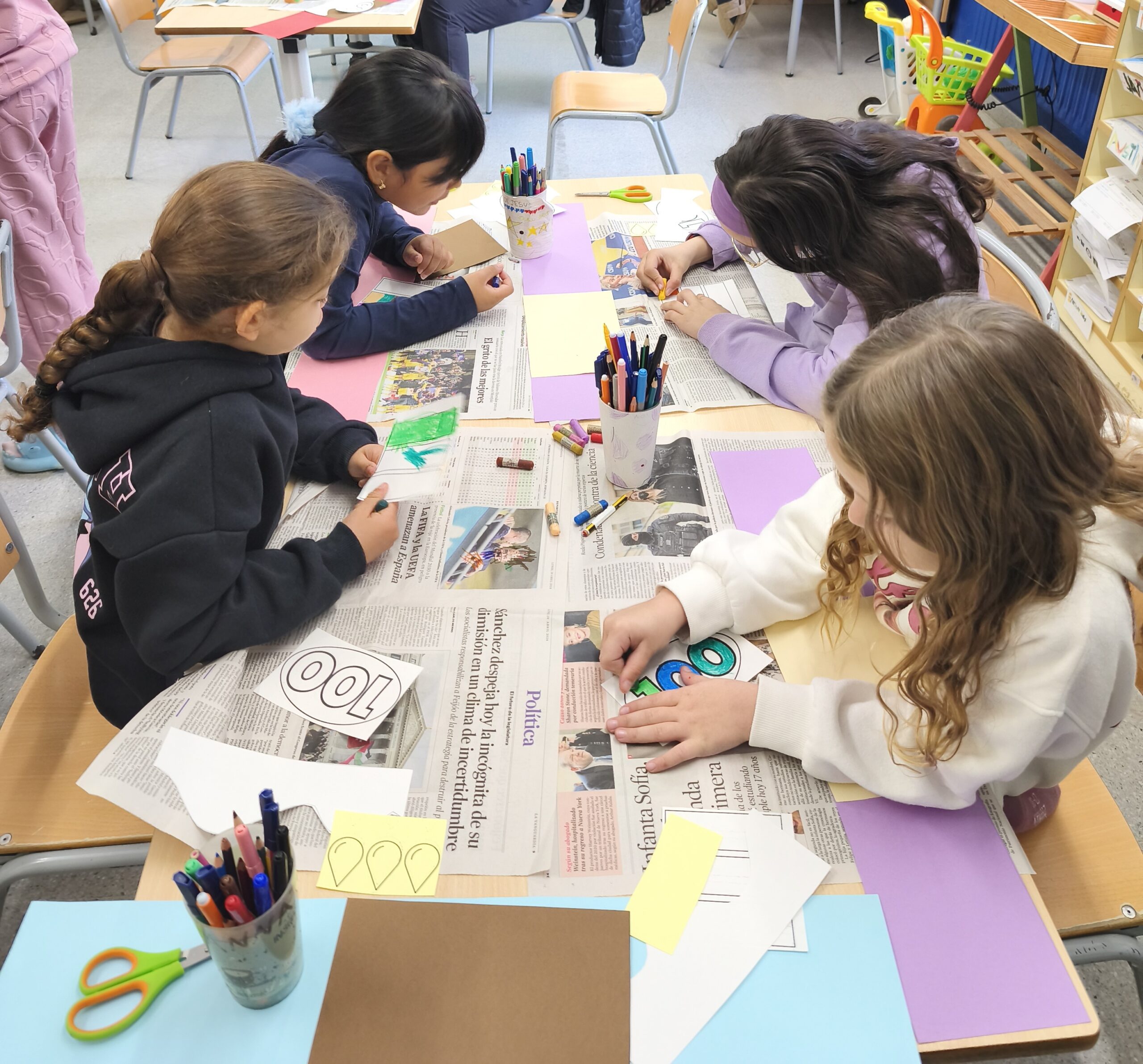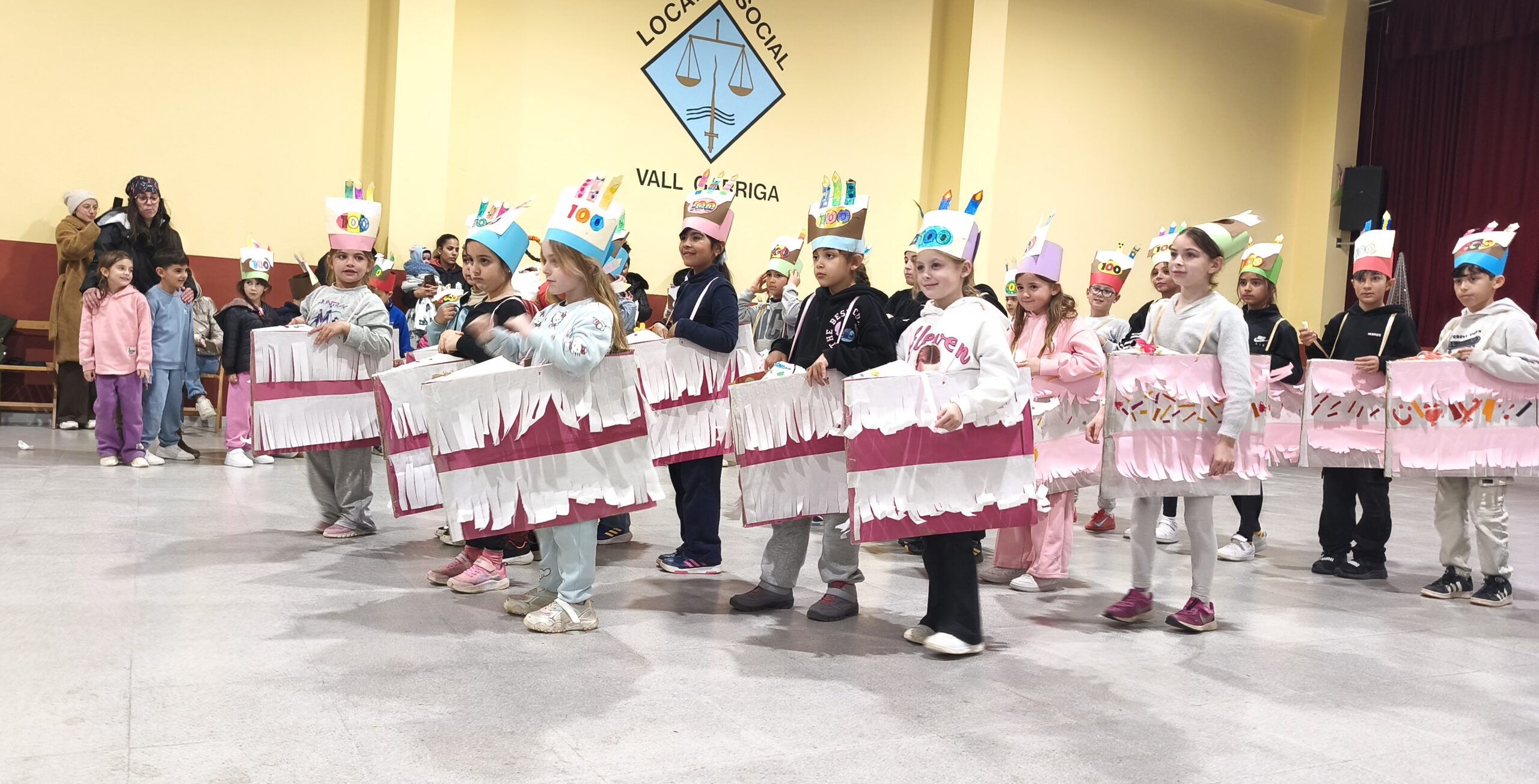 El divendres 6 de febrer els nens i nenes de Cicle Superior es van convertir en cuiners i cuineres per a fer un pastís per a celebrar els 100 anys de l’escola. Per fer-ho van rebre l’ajuda de la Reina Carnestoltes que ens va portar objectes relacionats amb les consignes de la setmana següent. De mica en mica les van anar posant a l’olla tot rimant el que havíem de portar.